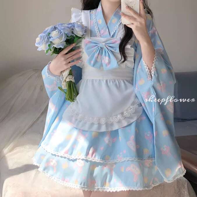 【S-L】全4カラー ヘッドスカーフ付き和ロリメイド服 kos50★