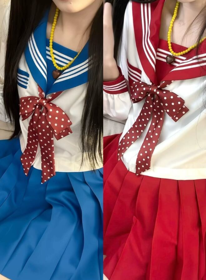 【S-XL】全2カラー ドット柄リボンセーラー服 seifuku13★